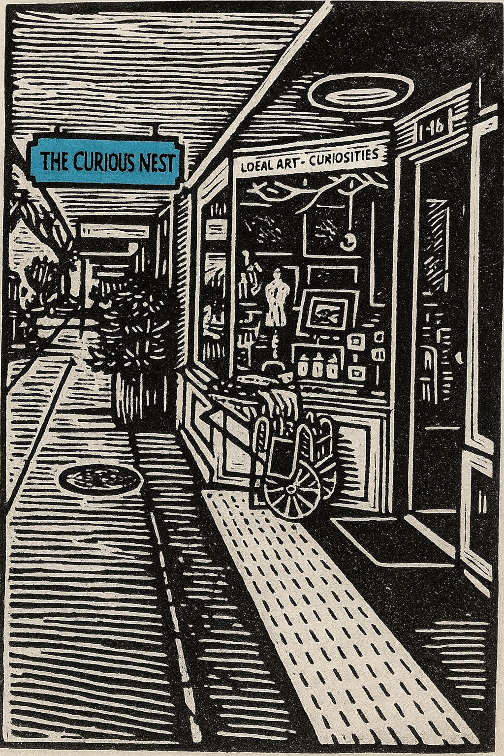 The Curious Nest offers found and created treasures, including French antiques, local artwork, and unique jewelry, art, and up-cycled items.