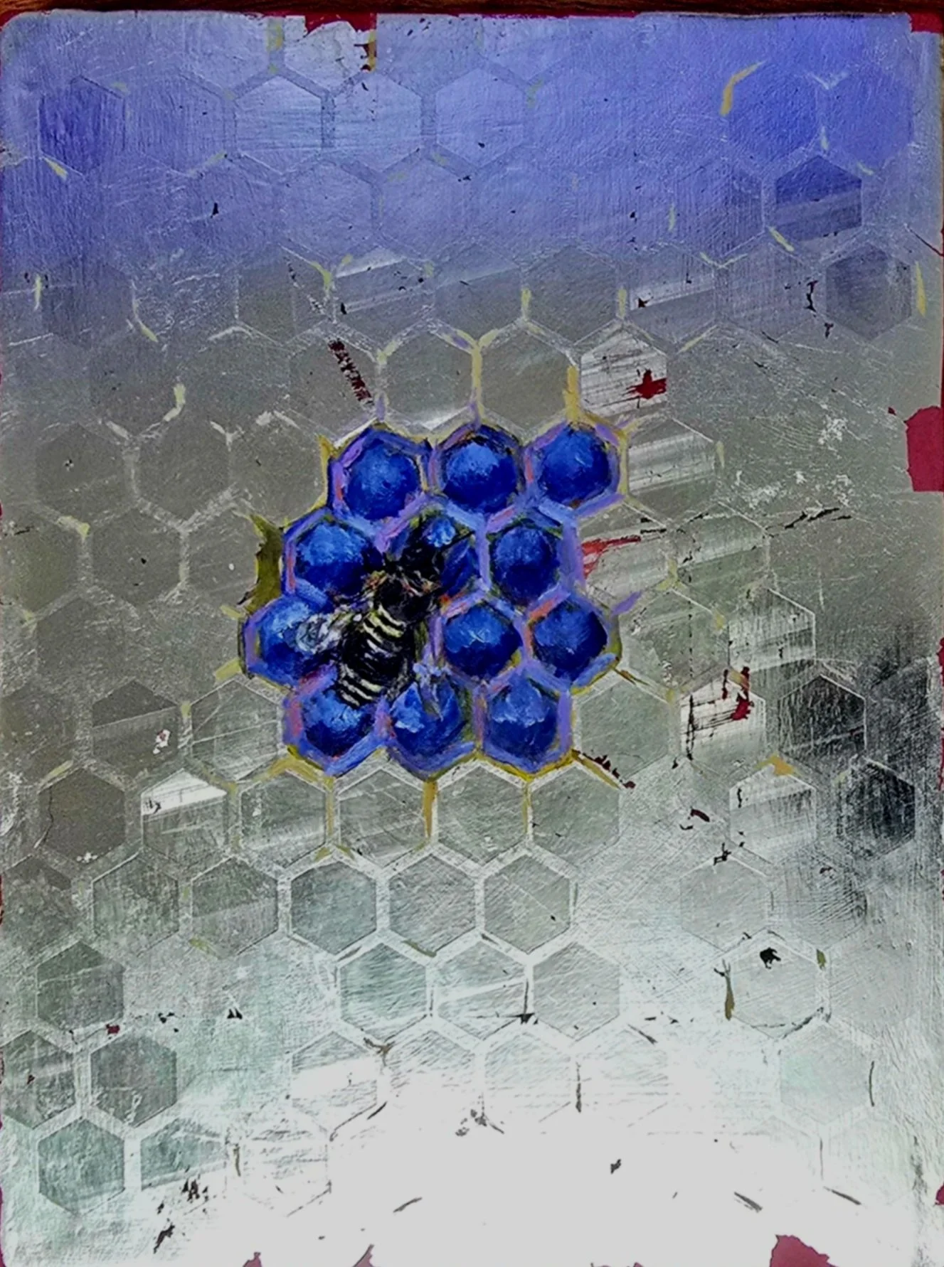 Did this bee live beside the shelled candy company? We’ll never know. Blue honey is the product of their hard labors though. Comes Framed